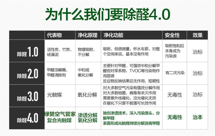 創(chuàng)綠家環(huán)??萍加邢薰鹃_創(chuàng)了全屋空氣環(huán)境治理4.0的新時代!!“綠贊空氣管家”采用復(fù)合納米光觸媒滲透技術(shù),分類除醛,直擊源頭!一次除醛!長期有效!
